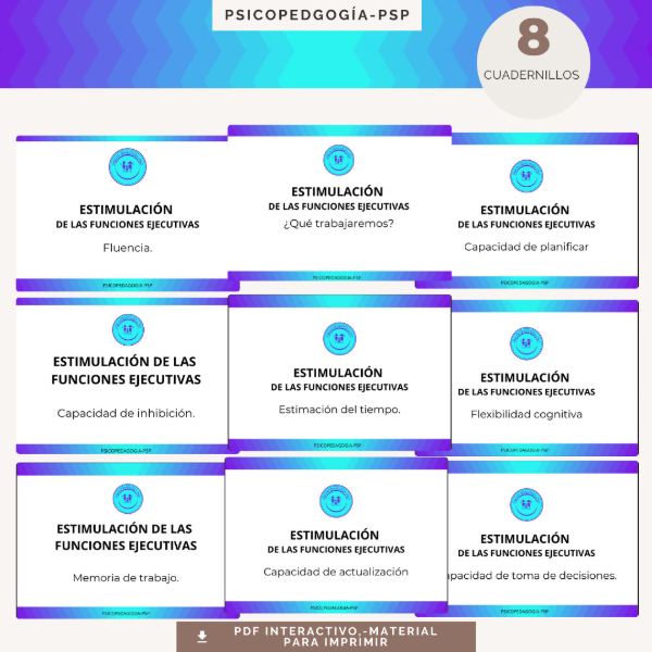 8 cuadernillos + 1 de presentación general del material + hoja de registro y seguimiento para el profesional y hoja de registro y seguimiento personal .